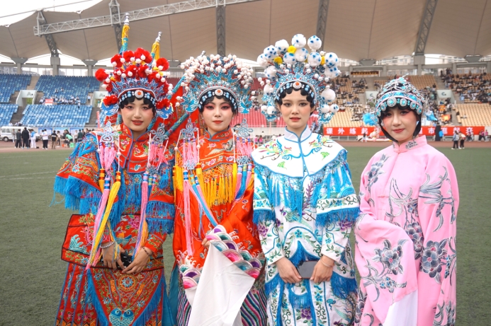 开幕式方阵表演团队:人文学院中有艺术类的学科,京剧是学习的一个重要内容,而且现在非遗文化也是一个焦点,京剧就是重要的非遗文化之一,我们想通过这样一种形式传承和发扬中国非遗文化,增强交大学子的文化认同。