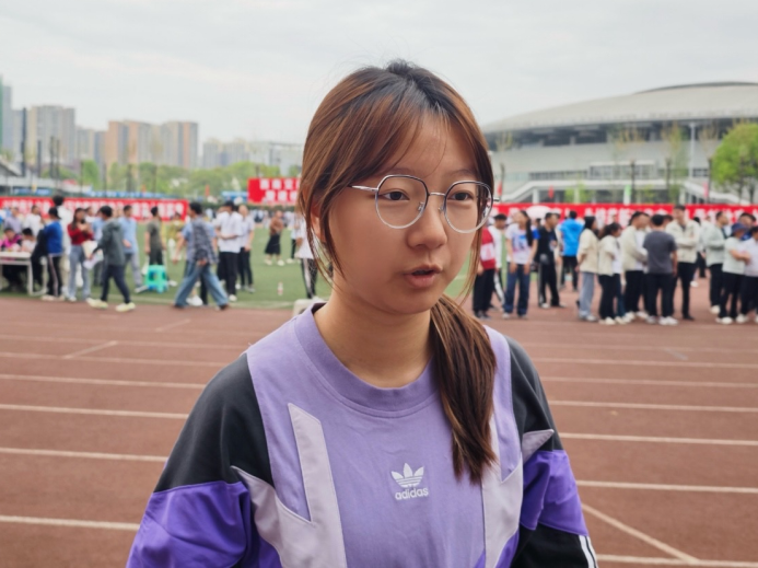 高倩茹:我想说的是,幕后人员真的非常辛苦。在筹备比赛阶段和比赛过程中,他们付出了大量的努力和汗水。我已经坚守岗位一天半了,深知其中的不易。同时,看台上的观众也非常热情,他们带着鼓、拍手器和队旗,为运动员们加油助威。虽然他们没有直接参与到比赛中,但正是他们的热情和支持,营造出了如此热烈的比赛氛围,正是大家共同的付出和支持,让本次运动会更加精彩难忘!