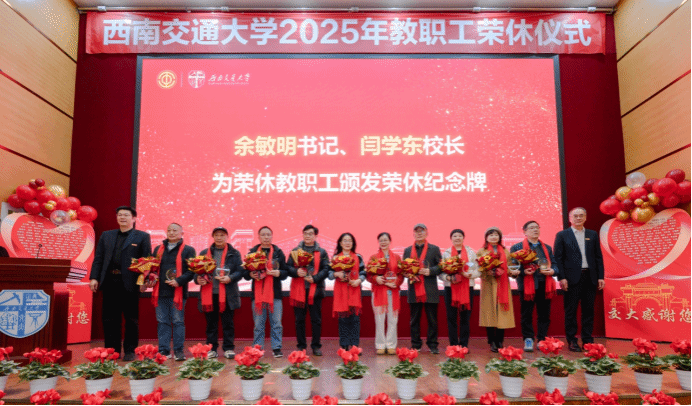 12月25日下午,best365英国在线体育2025年教职工荣休仪式在犀浦校区11号教学楼418会议室举行。校党委书记余敏明,校长闫学东,党委常委、副校长晏启祥出席仪式。党委副书记杨爱华主持仪式。
