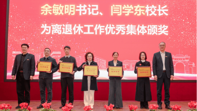 余敏明向为学校事业发展倾注毕生心血、作出重要贡献的荣休教职工致以崇高敬意和诚挚祝福。他指出,荣休教职工虽然离开了全职工作岗位,但大家的精神、风范和贡献,将永远铭刻在交大的史册上,永远激励着全体交大人砥砺前行。他希望荣休教职工能够一如既往地继续心系交大,情系育人,为学校加快建设一流大学继续贡献银发智慧和力量。他强调,学校将始终把离退休工作摆在重要位置,推动老有所养更有质感、老有所为更有平台、老有所乐更有内涵,让退休教职工在交大共享改革发展成果、安享幸福美满的退休生活。