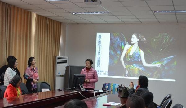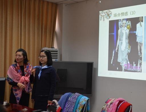 作为此次活动的主讲嘉宾,COCO老师从丝巾的发展、丝巾搭配原则、认识丝巾、图案情感、色彩选择策略和丝巾的妙用及系法六个方面向各位女教师介绍了丝巾在女性同胞生活中的妙用。其中,COCO老师给各位女教师在丝巾选择方面支出了妙招——根据自己的喜好,为个人做出最佳选择。在展示丝巾的系法时,COCO老师更是手把手教学,向各位女教师介绍了平结、正反折纸节和蝴蝶结三种系法。
