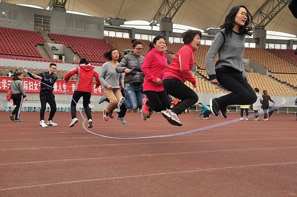 女老师们在运动场上尽情的跳,尽情的笑。今天,她们是校园里最美的风景。她们用她们的美丽,她们的自信诠释了“健康人生,幸福女人”的主题,她们是当之无愧的“女神”。