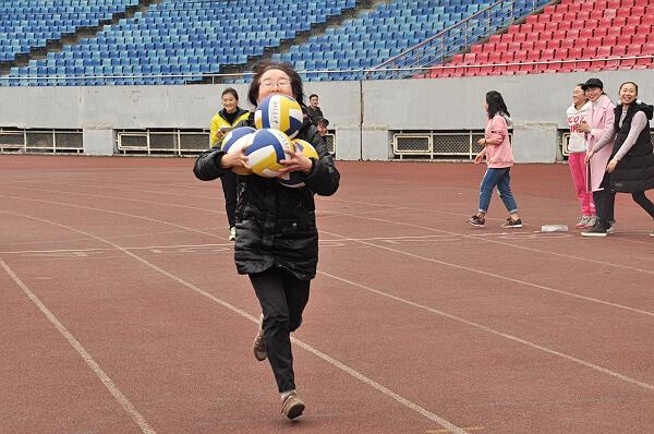 本次比赛活动充满趣味性。其中运球接力跑游戏不仅考验了众教师的体力,更是对老师们互相沟通交接的考验。六个轮回跑中,参赛队员摩拳擦掌,旁边观众更是跃跃欲试,最后机械学院的老师们以30秒14的成绩夺得本次项目冠军,六位老师配合之默契让人叹为观止。集体跳绳的游戏同样是对大家默契度的考验,八个人同时起跳同时落地,一个人的不慎都会导致整个游戏的结束,好在机关老师们的协作配合,为她们夺得头筹。