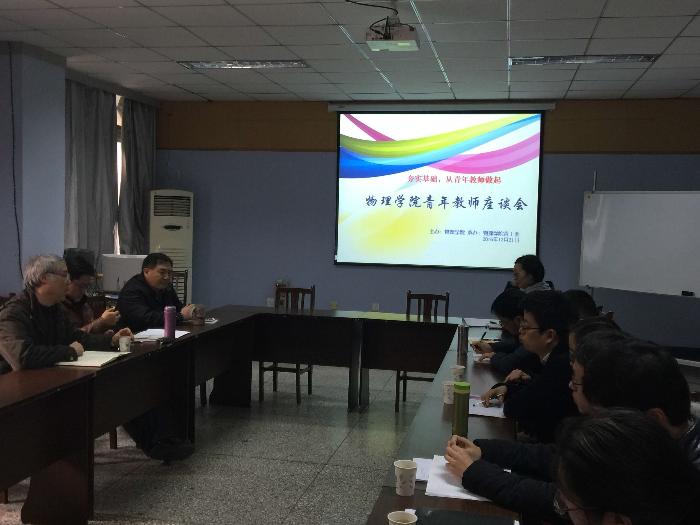 交流过程中,青年老师们提出了自己参加工作以来遇到的一些困惑,也谈到了使学院更好发展的一些想法。例如,有老师就提到了科研过程中经费断档的问题(青年基金结束但还没申请到面上项目),也有新入职的老师提到了如何顺利通过学院教学关的事宜。也有老师提出我们物理学科一定要尽快建立博士后流动站,为学院争取更多的成果等。