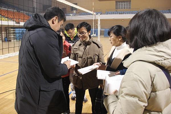 为了向本校教职工普及排球裁判知识,以便更好地开展教职工排球活动。2017年1月5日17时,教职工排球协会在犀浦校区主体育馆对协会会员进行了排球裁判员培训。