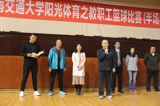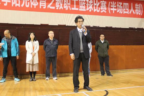 接下来,校教职工篮球协会副主席王齐荣发表了讲话,首先他对本次比赛的圆满成功表示了祝贺,然后他对本次比赛的参赛队伍的增加、各队伍运动员竞技水平的提高、裁判员水平的提升、场馆安排及组织工作的更加完善、比赛氛围更加的融洽表示非常的欣慰。他认为,大家做到了“比赛第一,友谊第二”,能够在比赛过程中尊重裁判,尊重对手,发扬了运动精神,体现了交大魄力。他表示,通过这样的活动,能够让更多的教职工走向球场,参加锻炼,提高自己的身体素质,磨砺自己的意志,愉悦自己的身心,使大家更好的投入到工作和家庭中去。他欢迎更多的教职工加入篮球协会,最后王齐荣副主席祝各位教职工身体健康,家庭幸福,工作顺利。