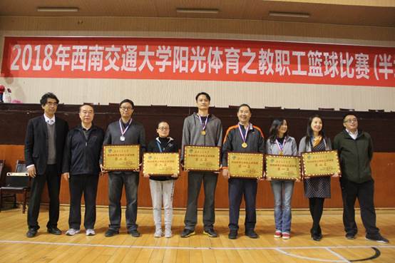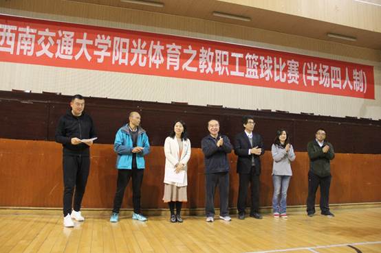 2018年11月9日下午5:30,best365英国在线体育阳光体育之教职工篮球联赛收官赛暨闭幕仪式在犀浦校区体育馆如期举行。校工会副主席盛鹏、体育部书记潘喆、地环学院党委书记王齐荣、材料学院工会副主席王良辉、技术代表黄德建、裁判长侯磊、校工会宣教部部长张宏亮出席了本次活动。