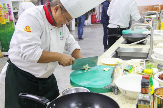 随着烹饪指导罗老师的每一个步骤的详细讲解与亲自示范操作,各位在场的老师都纷纷领悟到了制作酸菜鱼的流程与诀窍。