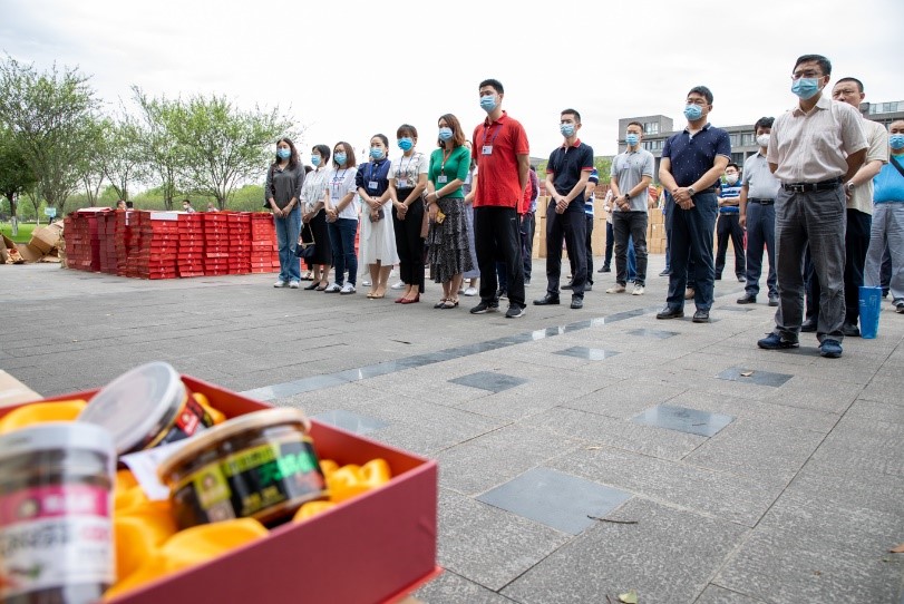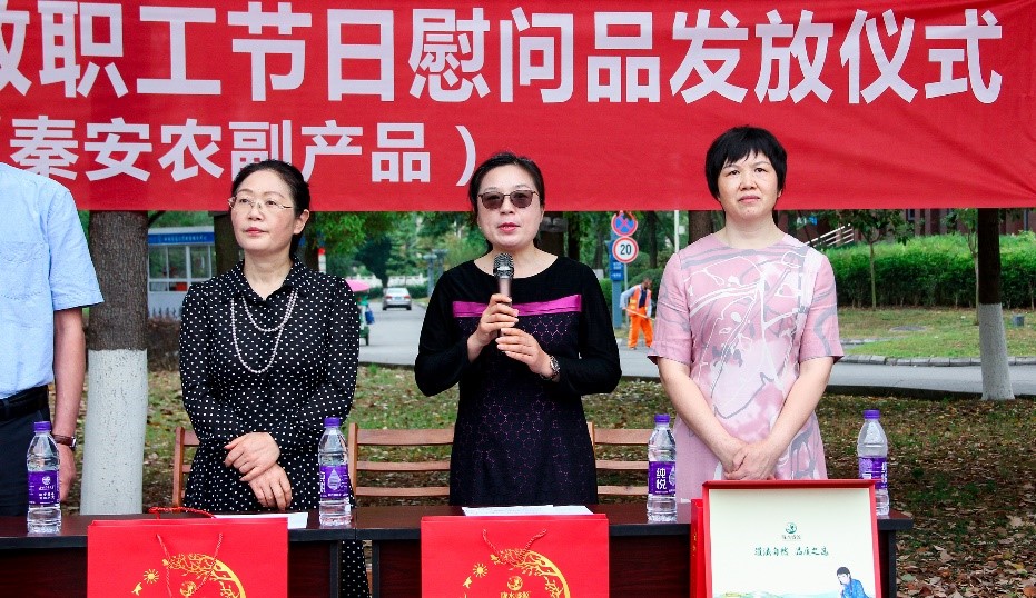 5月8日上午,best365英国在线体育工会在犀浦校区综合楼侧图书馆门前广场举行“秦”慰问,“食”帮扶,best365英国在线体育2020年教职工节日慰问品(秦安县农副产品)发放仪式,党委副书记桂富强、副校长朱健梅出席仪式并致辞。
