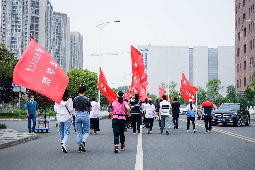 教职工们一路前行的矫健身姿、永不言弃的运动精神,与高高飘扬的旗帜融合在一起,组成了一道灵动而富有活力的风景线。阳光正好,你我同行,健康运动,齐心抗疫。