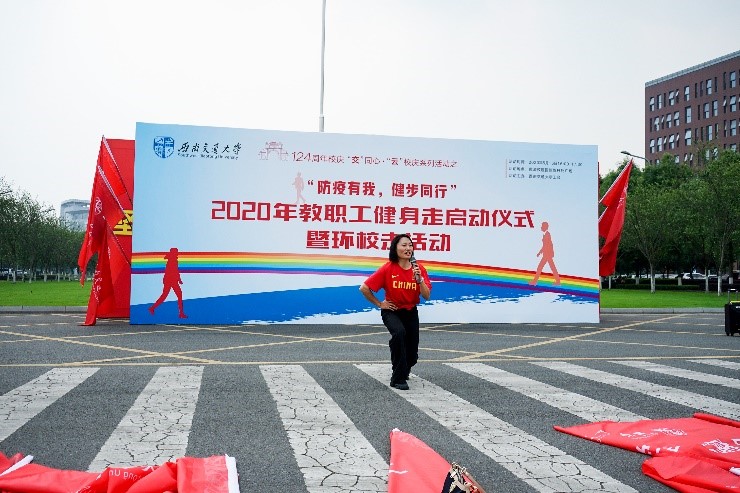 5月15日下午4时,best365英国在线体育124周年校庆“交”同心·“云”校庆系列活动之“防疫有我,健步同行”2020年教职工健步走启动仪式暨环校走活动在犀浦校区顺利举行。全校各二级部门工会124名教职工代表到现场参加活动,党委桂富强副书记出席仪式并致辞。