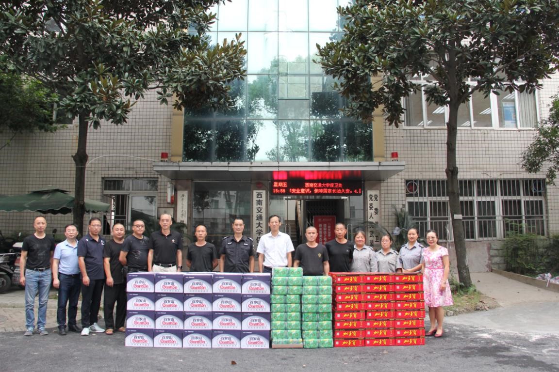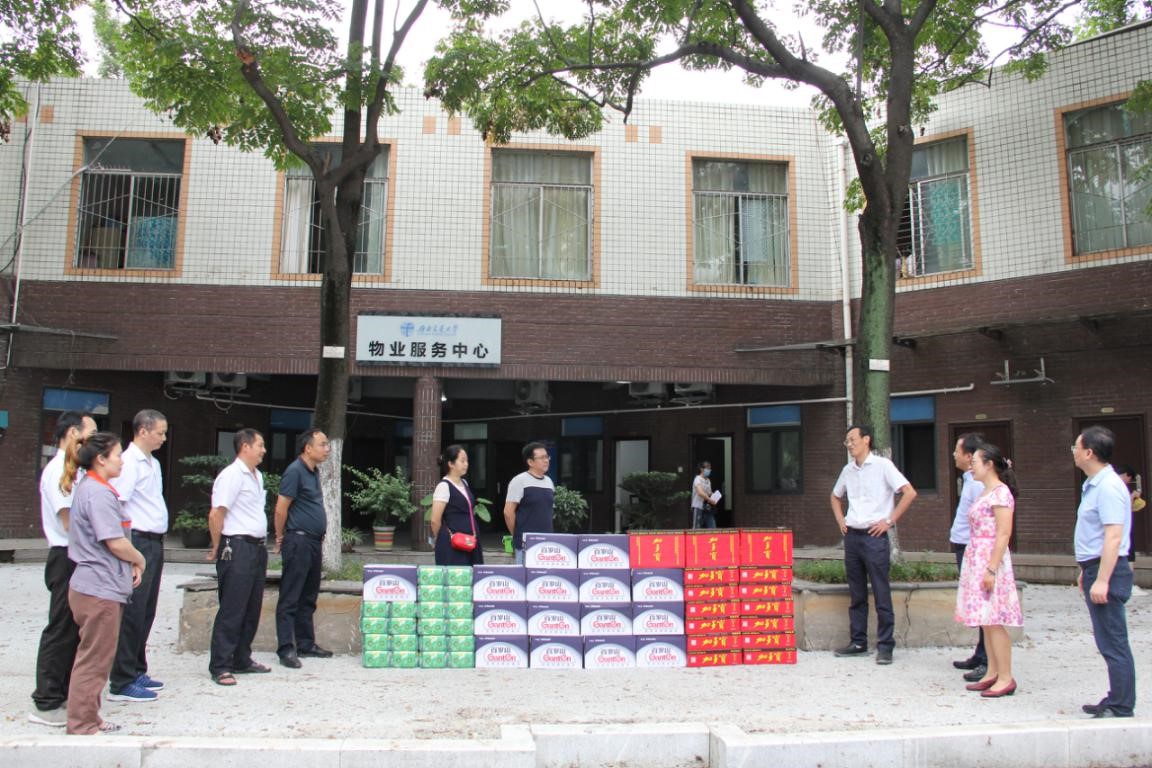 9月11号下午,桂富强书记带领郑江主席、李煜宏副主席一行来到九里校区,向在假期酷暑中依然奋战在一线,为九里校区综合治理与改造,保证九里校区顺利迎新付出辛勤汗水的保卫处、后勤与基建管理处、物业服务中心、维修水电运输服务中心等员工进行慰问,他说,你们的工作是学校工作中至关重要的一部分,在今年疫情这个特殊的环境下,大家一起克服重重困难,保证了开学准备工作的顺利展开,每个人都是建设者、贡献者,大家辛苦了!