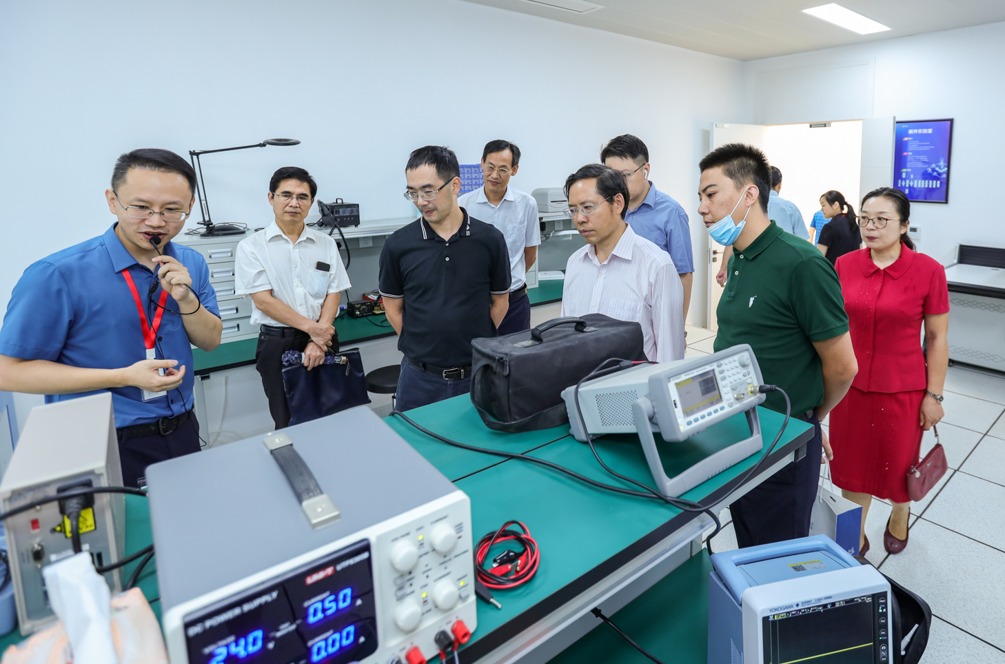 检查组一行先后参观了李群湛劳模创新工作室及best365英国在线体育职务科技成果改革孵化项目(成都尚华电气有限公司)同相供电系统实验平台。在工作汇报阶段,李群湛劳模创新工作室教师团队代表解绍锋教授从领衔人李群湛教授及工作室介绍、同相供电系统“三步走”战略研究成果、所获荣誉奖项等三个方面,汇报李群湛劳模创新工作室建设成果。李群湛劳模创新工作室产业化团队代表李子涵总经理从工作室构建产学研用新型组织架构、科研攻坚核心问题出发,介绍工作室以教育、科研为原点,系统服务于高速铁路牵引电力系统的发展与革新所开展的科技成果转化运用及推广。