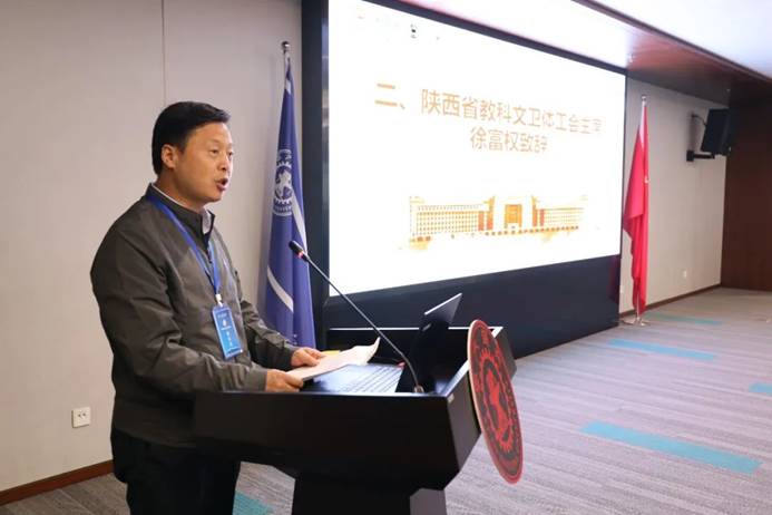 首先,徐富权代表省教科文卫体系统对兄弟高校工会同仁的到来表示热烈欢迎。他介绍了陕西省教育情况以及省教科文卫体系统在贯彻习近平总书记重要讲话精神等方面的举措,重点介绍了省总工会与西安交大签约战略合作协议,在建立双方工作联系机制、开展工运理论研究、举办劳模学历提升和职工技能培训、开展工会干部系统培训、创建“全国模范职工之家”等事项上达成合作。希望与会交大工会工作者发挥高校人才优势、资源优势,充分调动教职工的积极性和聪明智慧,为新时代党和国家事业发展作出新的更大的贡献。