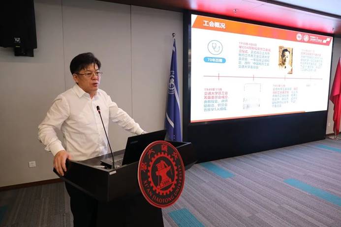 上海交大工会主席于朝阳以“凝心聚力,服务大局,推进一流大学一流工会建设”为题,从工会概况、工作亮点、今年工作、相关思考等方面,介绍了上海交大工会作为党委和行政的“快递小哥”,在思想政治引领、文体工作多元格局、劳模精神形式创新、建家工作创新发展、全方位帮扶救助体系、首创对口消费扶贫新模式、暑期疗休养、“SJTU FAMILY”普惠平台、智慧工会系统等方面的经验做法。