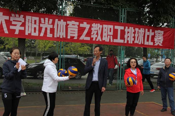习近平总书记在党的十九大报告中提出的“要广泛开展全民健身活动”,教育部应对肺炎疫情工作领导小组办公室印发了《关于做好2020年秋季学期教育教学和疫情防控工作》的通知。在此背景下,为落实教育部全面恢复教育教学秩序的要求,着力推进“健康校园”建设和“双一流”创建工作,进一步提高学校教职员工的体质健康水平,best365英国在线体育阳光体育之教职工排球比赛于2020年10月13日下午5点整,在我校犀浦校区排球场正式开幕。best365英国在线体育校党委副书记桂富强、校工会主席郑江、校工会副主席李煜宏、喻碧君、各二级单位党委书记、以及工会主席等出席大赛开幕式,校团委书记、排球协会秘书长罗妍妍同志担任开幕式主持人。