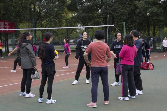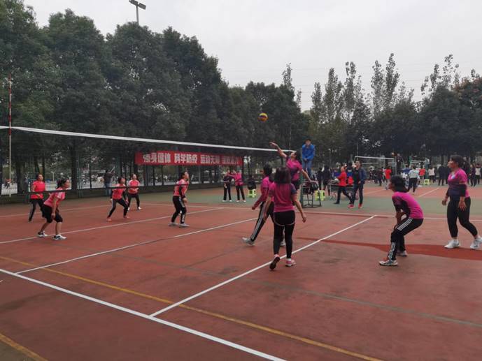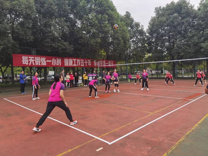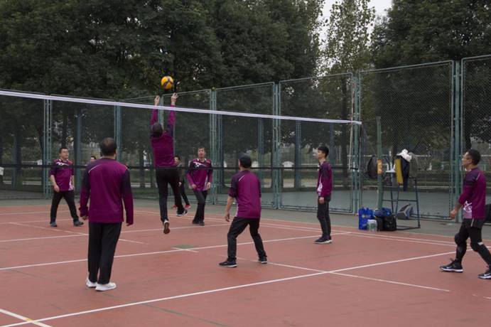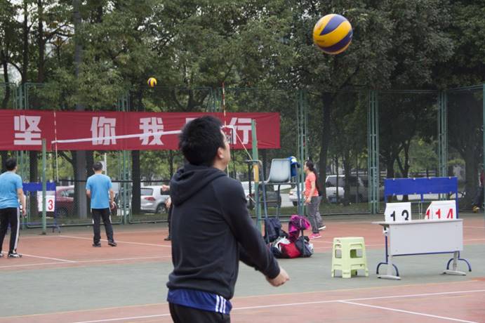 今天是2020年best365英国在线体育阳光体育之教职工排球比赛赛程第三日,下午,还未到比赛时间,排球场的六个场地已经被前来热身准备的老师们占满了,老师们一队队穿着统一的队服,整整齐齐,衣服上的不同颜色给绿色树木围绕的排球场增添了许多抹亮色。