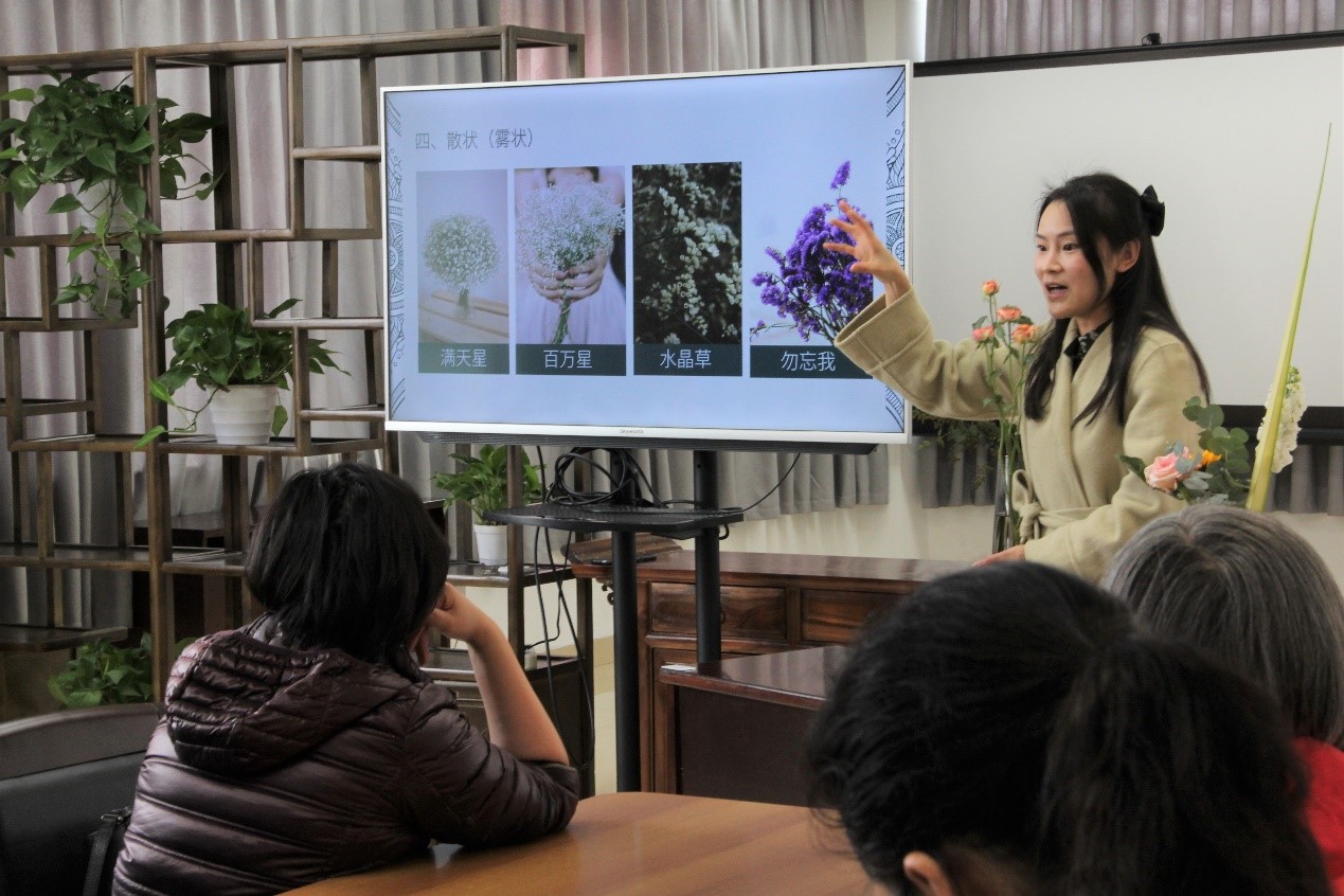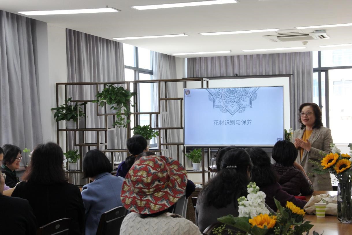 2021年3月26日中午12:30,由校工会主办,教职工插花艺术协会和图书馆工会承办的插花花艺培训课程在九里校区图书馆523会议室正式开班。