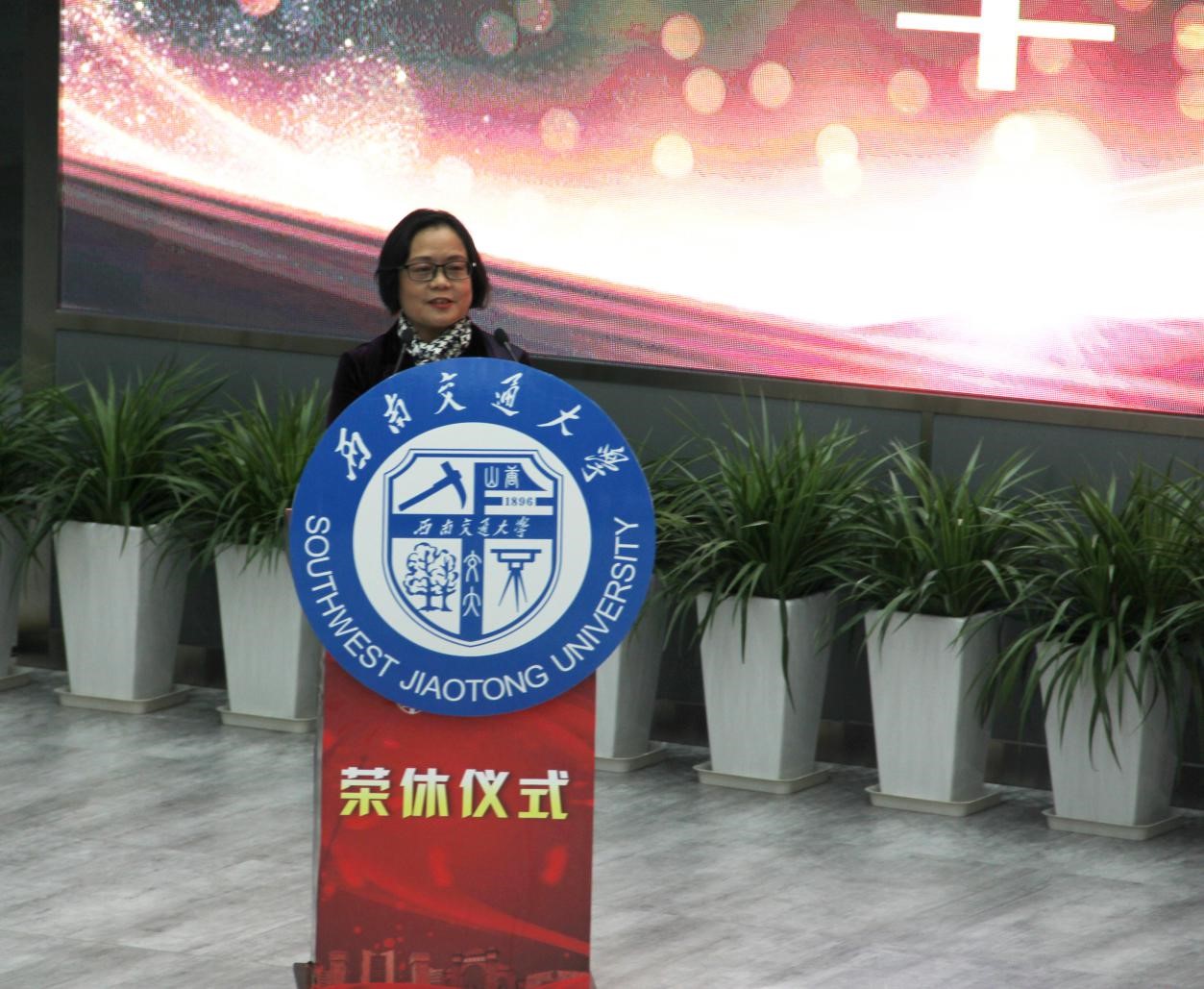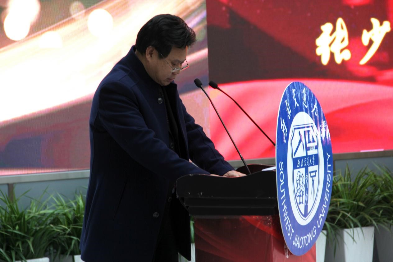 仪式进行第三项:姚发明副校长宣读荣休人员名单。姚副校长这样说到,在98位退休教职工中,不少人陪伴交大从峨眉搬至九里最后落地犀浦,将自己的智慧与汗水献给了交大,献给了自己所热爱的教育事业。姚副校长还提到,荣休仪式的启动,无论对于教职工还是学校都有着极其重要的意义:对教职工而言是对于多年教学事业的总结和肯定,也是事业发展值得骄傲的荣誉;对学校而言,荣休教职工多年辛勤奋斗在学校发展一线上,值得学校永远铭记。之后他宣读了此次荣休的98名教职工名单。