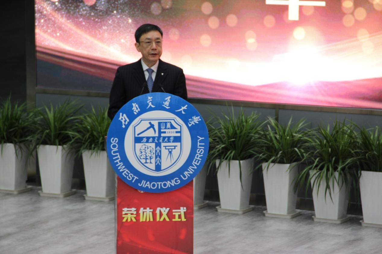 仪式进行第九项:杨丹校长讲话。“从办学兴教、筑路报国,到三线内迁、成峨办学,再到不忘初心、新起征程,每一次关键时刻,我校广大教师都挺身而出,为学校发展加油助力,共同描绘了best365英国在线体育的美好蓝图”,杨校长这样讲到。杨丹校长表示了对于退休教职工辛勤付出的感谢,日复一日,年复一年地在教学科研岗位以及管理服务岗位,将默默付出视为常态的他们值得所有人的尊敬。教书育人,科研攻坚,他们两侧并重;三尺讲台,黑板粉笔,一呆就是一辈子。如今三号教学楼启用在即,在此隆重举办教职工荣休仪式,共同见证各位退休教职工们起航新的生活。杨丹校长代表学校衷心地祝愿各位退休教职工在新的人生阶段身心愉悦,身体健康;并希望大家继续关心学校发展,为学校提出自己的见解。最后,杨丹校长号召广大青年教授和青年学者要学习前辈们的精神,积极地投入学习和工作之中,走好属于我们这一代人的长征路。