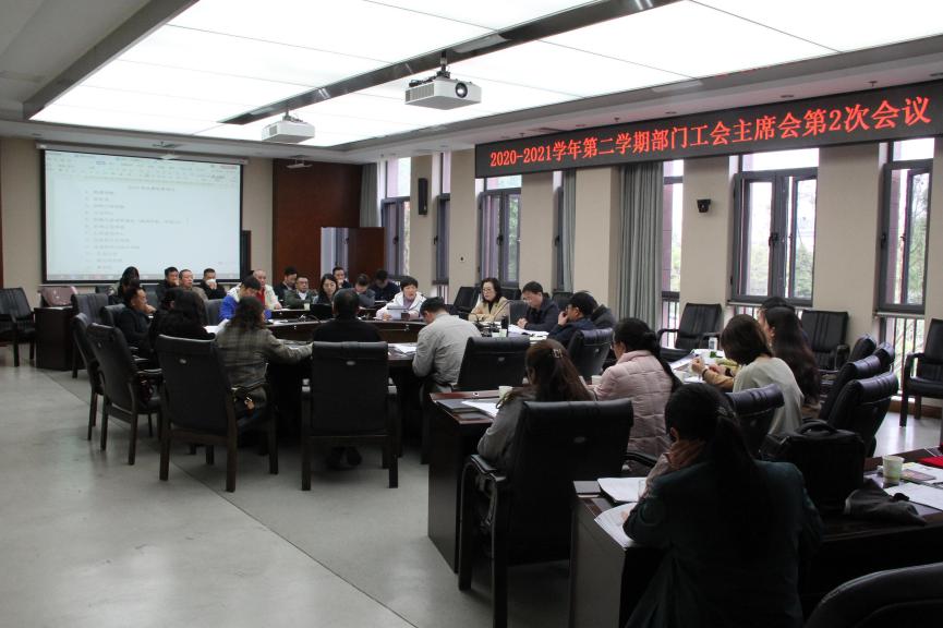 2021年4月7日上午十点,best365英国在线体育2020-2021学年第二学期部门工会主席会第2次会议在犀浦校区综合楼269室准时召开。出席本次会议的有校工会主席郑江、副主席李煜宏、副主席喻碧君及各二级部门工会主席。本次会议的主要内容是对习近平总书记在党史学习教育动员大会上的讲话和工会系统开展党史学习教育的工作要求进行集体学习,以及对近期的工作进行部署,并提出工作要求。