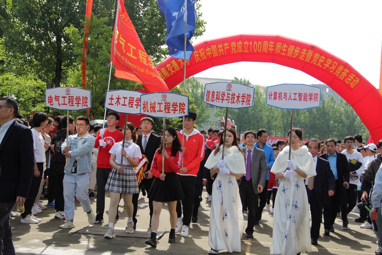 校党委桂富强副书记主持本次活动他提到,本次活动的主题是“永远跟党走,奋进新征程”,通过千名师生的校园健步行走,让老师同学们在行走中重温党的百年辉煌。他还深情寄语广大师生,希望通过本次活动,我校师生能以昂扬姿态,在学校高质量发展的快车道上,朝着建设“交通特色鲜明的世界一流大学”目标砥砺奋进!