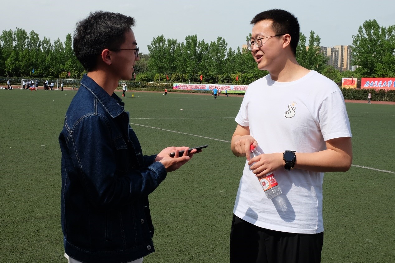 运动会第一天,赛程项目正在火热进行时,校工会记者团采访了运动场内的部分教师、学生以及裁判员,感受到了大家澎湃的热情。
