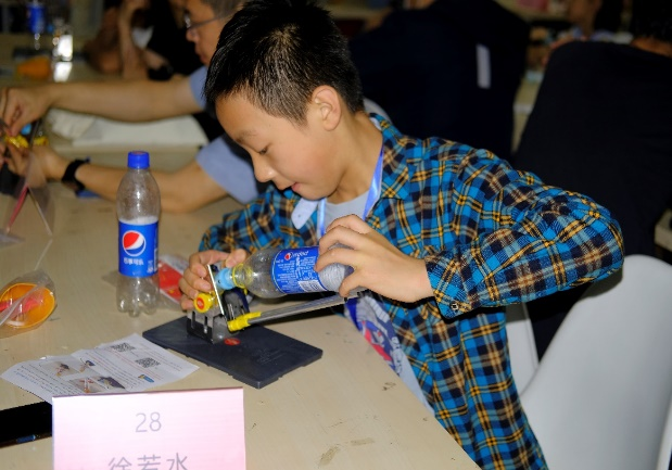 在参观结束之后,就到了开心的动手实践环节了。孩子们被分为两组,一组进行简易蓝牙音响的制作;另一组进行“水火箭”的制作。分别由工训中心的谢敏和龚丽老师带领孩子们和家长一同完成。