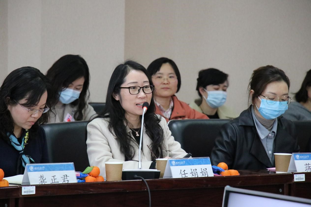 故事会伊始,校工会女教职工委员会主任委员、党委教师工作部副部长李箐作为主持人进行了嘉宾介绍,随后校工会郑江主席做开场讲话。郑江主席代表学校工会向大家表达了节日祝福,她指出为纪念“三八”国际劳动妇女节112周年,校工会、女教职工委员会策划组织了以“喜迎二十大,建功新时代”为主题的系列活动,旨在寻找她力量,欣赏奋斗者绽放的芳华;汲取她智慧,让每一个闪亮的名字熠熠生辉;凝聚她共识,建功新时代,为交大“双一流建设”贡献力量。郑主席强调,“广大女同胞们奋斗的身影,是学校最美的风景。”她希望通过巾帼故事会,展现交大女性的卓越才干,彰显交大女性的优秀品格,倡导交大女性追逐梦想的时代风向。