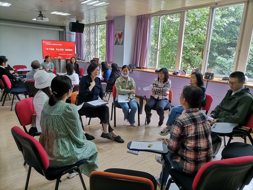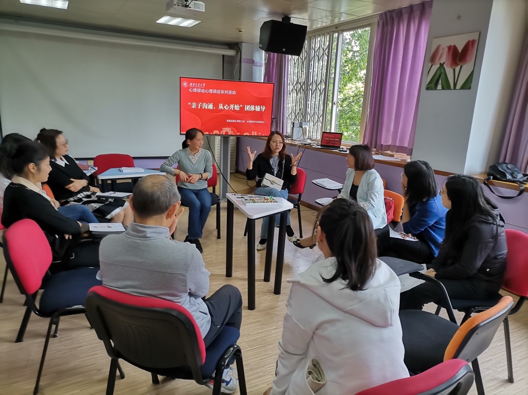 亲子沟通是影响家庭关系的一个核心且基础的部分。它既是父母了解子女行为与心理的重要手段,也是影响子女认知和情感发展的重要因素。良好的亲子沟通有利于增加家庭成员之间的亲密程度,对家庭的每个成员的身心健康起到积极的作用。为关心关爱教职工,有效帮助他们化解心理困惑,提高亲子沟通能力,促进家庭和睦和谐,提升职工的幸福感和归属感,校工会与心理研究与咨询中心,以心灵驿站为依托,邀请汪小容、张涛两位专家,开展“亲子沟通,从心开始”团体心理辅导活动。