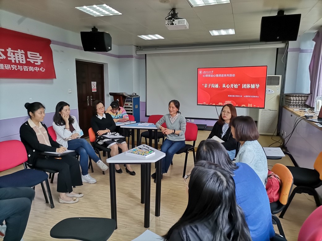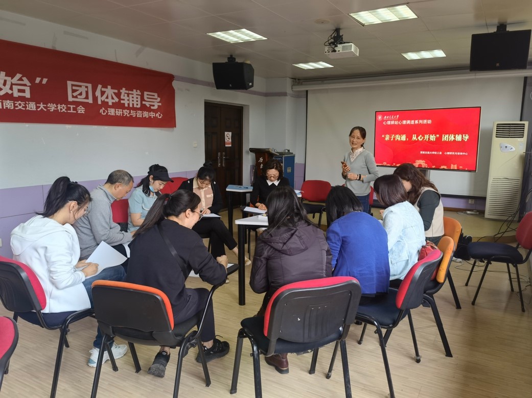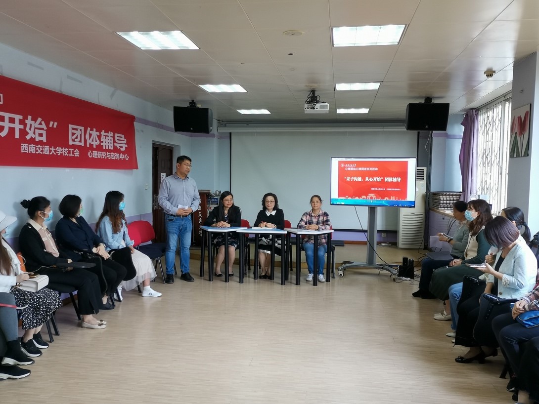 “当亲子沟通存在冲突时,要知道我们不是孩子的敌人,我们跟孩子是在一起的。” “学会倾听与表达,学会同感与共情,学会尊重与期待,就能打开心扉,增进亲情、引领成长,提升家庭幸福感。”4月21日下午14:30,20余名教职工齐聚犀浦校区5229会议室,“亲子沟通,从心开始”团体心理活动由外国语学院承办,在外国语学院工会主席武俊的主持下,正式拉开序幕。校工会主席郑江、心理研究与咨询中心党委书记刘咏梅出席了活动。