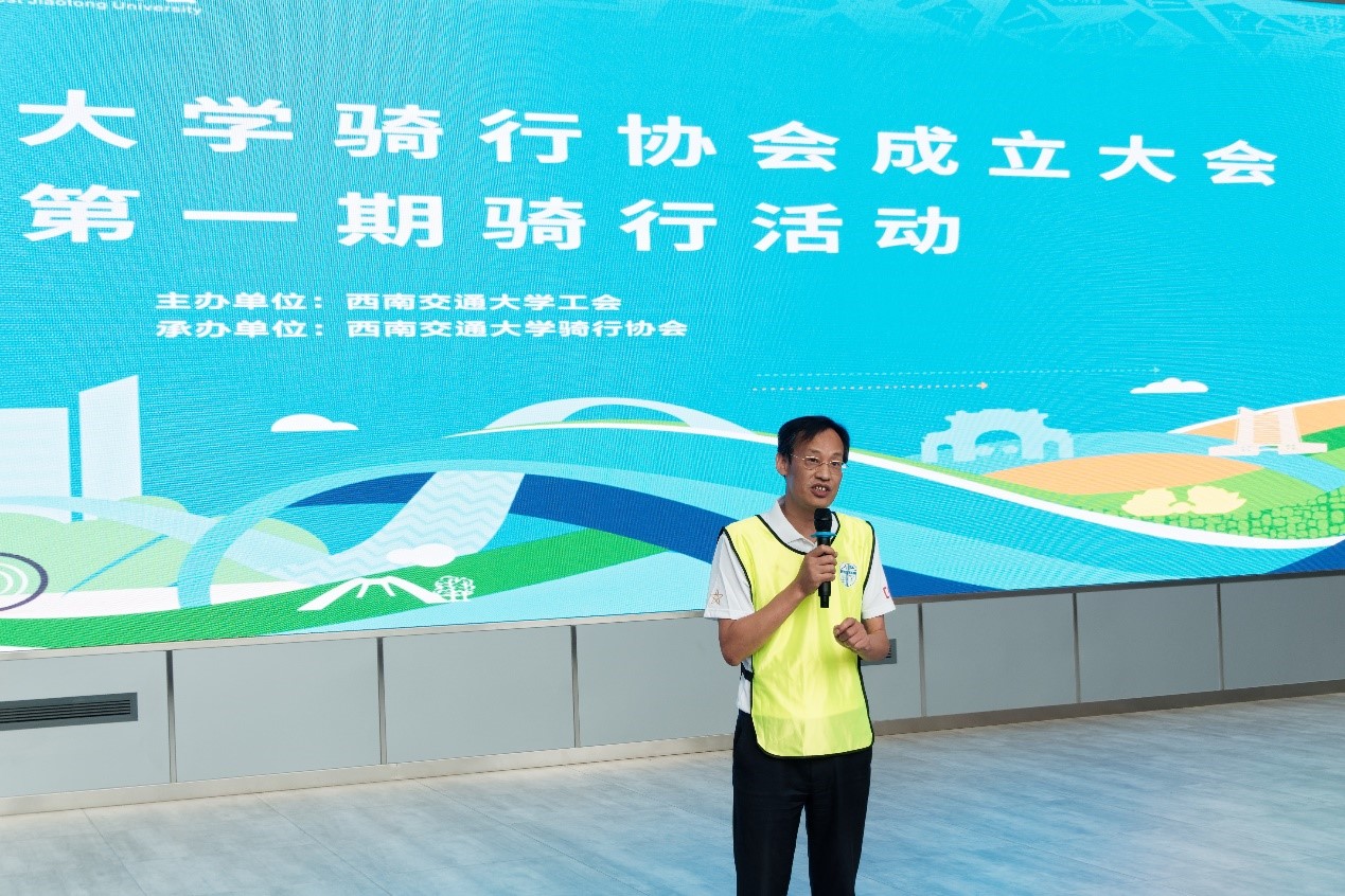 浓情六月,多彩夏日。best365英国在线体育骑行协会于6月12日上午8:30在犀浦校区第三教学楼一楼下沉广场举行成立大会。校党委桂富强副书记、校工会郑江主席等领导出席了大会,68名热爱骑行的老师们和12名大学生自行车协会志愿者汇聚一堂,共同见证协会的诞生。大会由刘堃老师主持。