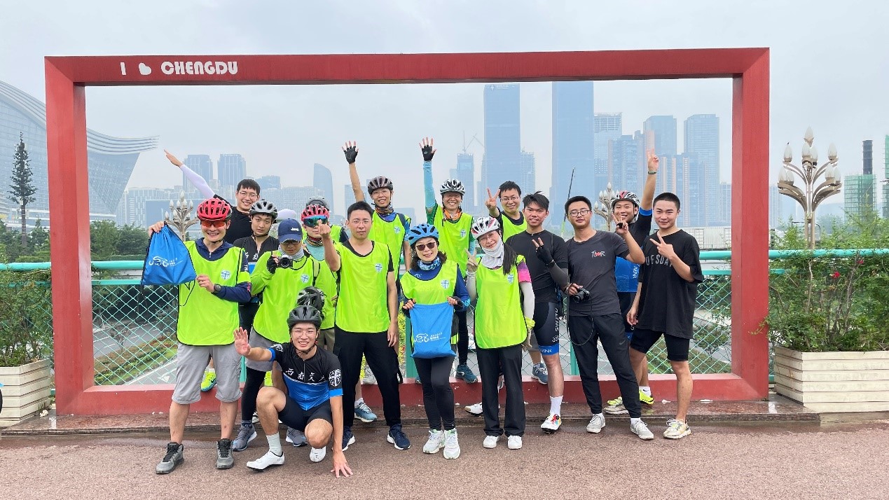 第二阶段为天府绿道骑行活动。由李宁老师进行骑行技术指导及安全提示,活动共分两组,欢乐骑游组由葛新任领队,高磊、夏旭任组长,103挑战组由陈锴任领队,李宁、王克贵任组长。