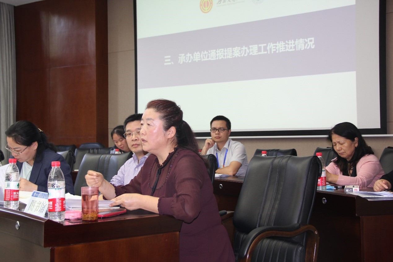 会上各承办单位通报了提案工作的进展,后基处副处长高磊、资实副处长郭剑、人事处副处长翟东海、战略处副处长蒋晗、图书馆副馆长罗秀云等分别报告了本单位办理提案的推进情况,同时,也反映了在办理工作中遇到的实际问题。提案委代表与参会人员就办好提案交换了意见。