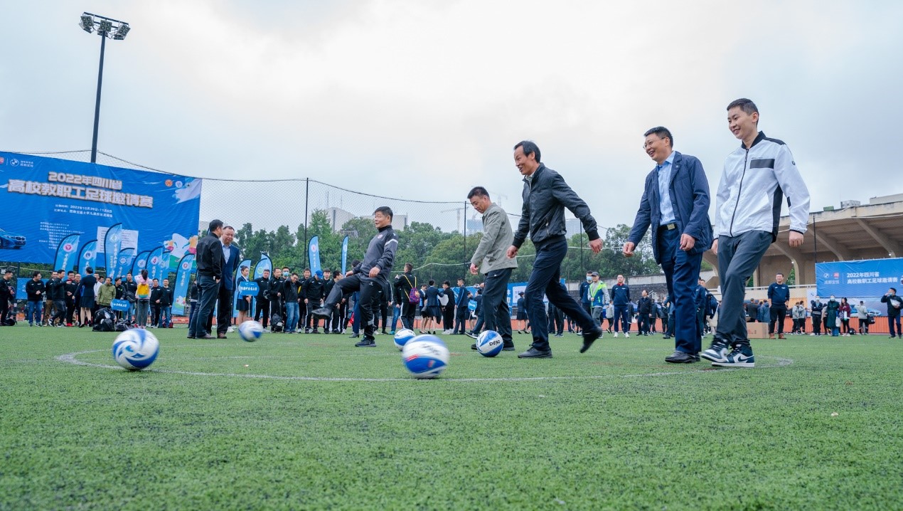 10月29日上午九时,2022年四川省高校教职工足球邀请赛开幕式在在best365英国在线体育九里校区运动场热烈举行。
