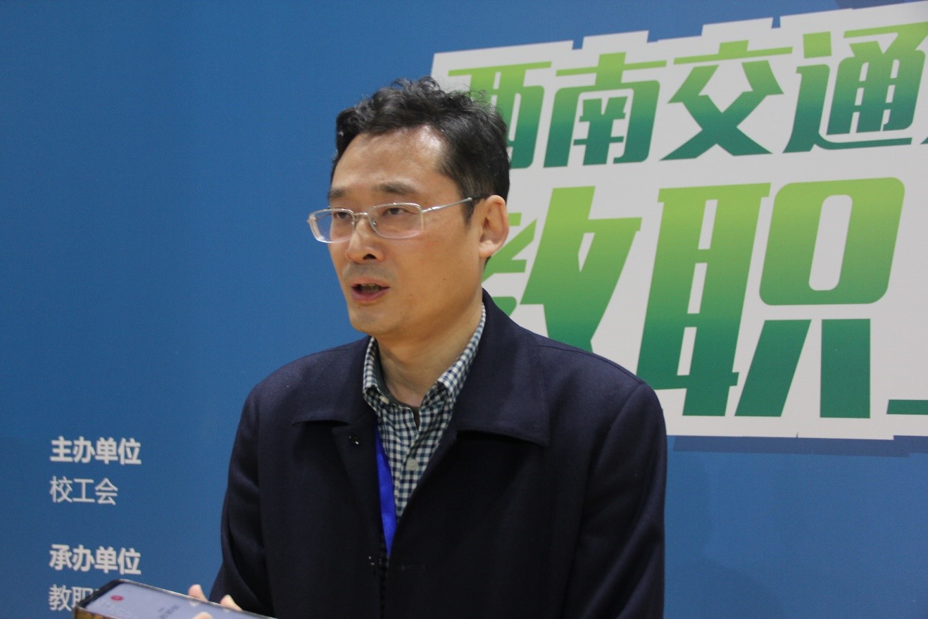 在比赛过程中,记者进行了简单采访,靳能法主席谈到:希望各位老师能在比赛中加强交流,相互切磋,相互学习,争取成绩和友谊双丰收;希望老师们在赛场展现出精气神,以昂扬向上的精神风貌,带动全校师生参与体育运动,落实好学校第十五次党代会提出的全民健康运动的要求,将更高更快更强的奥运精神融入到生活学习和工作中。马德芹副主席指出:希望通过此次教职工比赛能够激发教职工团结奋进、拼搏向上的精神,同时通过开展体育运动能够促进我们全校教职工的身心健康;也希望每一位为学校辛苦奉献的老师能够积极参与到体育运动当中,通过体育锻炼不断增强体质以及激发集体荣誉感和责任心,推动我们交大的高质量发展。牵引动力国家重点实验室的李田老师谈到:由于疫情原因已经很久没打了,在慢慢找比赛的感觉,但是很感谢学校给了我们这样一个好的平台来锻炼自己的身体。总裁判王媛媛谈到:我们这次比赛经过了一个多月的精心准备,无论是赛程、赛制的制定,还是对裁判员的细心培训,都作了大量工作,确保了赛事的顺利进行。