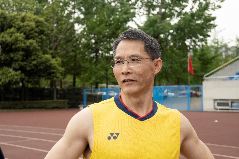 苏忠老师:年龄大了没有以前跑得快了,但是还是很高兴在这个小组第一个冲线。在平时我喜欢打球和游泳,我认为运动是个很好的东西,坚持就会得到效果,就会有一定的收获。