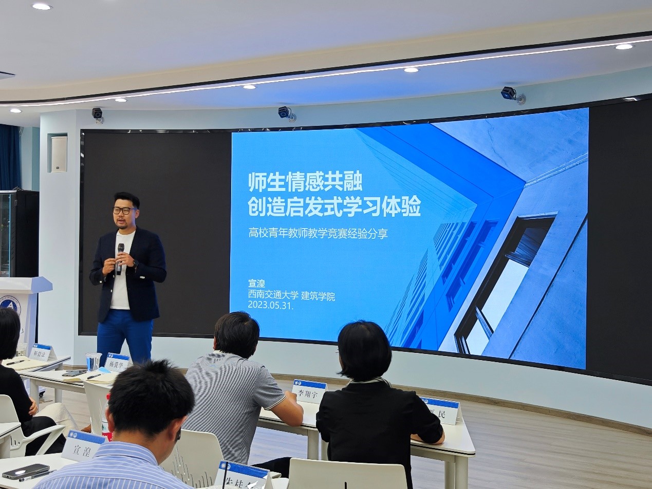 宣湟老师向青年教师们做了题为《师生情感共融,创造启发式学习体验》的报告,从为什么——成为更好的老师、是什么——漫长艰辛的磨炼、怎么做——情感联系的启迪三个环节展开,分享了自己的比赛经历和经验。教学应当通过强烈的感情,从当下问题出发,与生活和历史紧密联系,吸引和启发学生创造体验与记忆,以解决问题为导向,学以致用。最后,宣湟老师总结出“教学重在积累—致敬”、“比赛重在参与—传承”、“教书育人—职责”三个深刻体会。