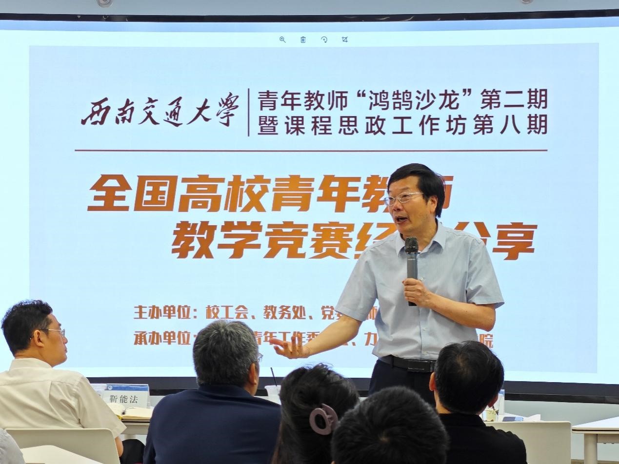 最后沈火明副校长对此次鸿鹄沙龙活动进行总结和点评。沈火明副校长首先向两位主讲人在全国高校青年教师教学竞赛中取得一等奖的好成绩表示祝贺。然后分享了自己曾经参加教指委的讲课比赛经验,从教学设计到教学组织安排,再到教案修改和教具动画设计,比赛过程不仅是对自己的提高,在比赛中形成的教学模板也一直沿用至今,同时勉励青年教师要珍惜宝贵的教学竞赛机会,利用多样化的交流平台,促进学科互通,掌握前沿的教学技术和方法。沈火明副校长表示学校也在积极搭建教学信息服务平台,包括教师教学创新中心,数字孪生中心等,为青年教师教学发展创新助力。最后,沈火明副校长强调青年教师要在做好科研的同时抓好教学,做到教学科研并重,真正实现教书育人的伟大使命。
