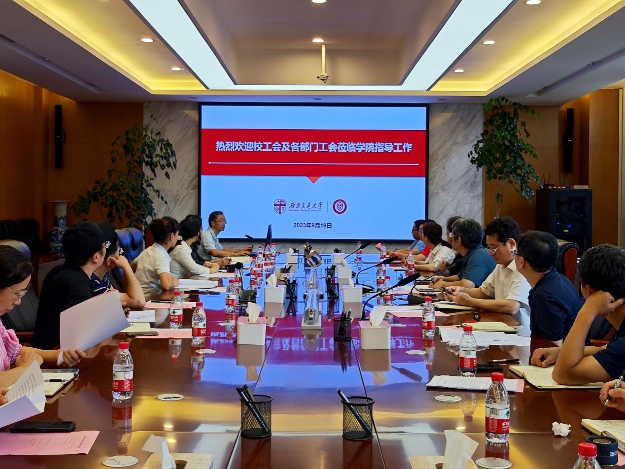 交运学院党委副书记、工会主席王正彬汇报了学院工会工作。王正彬主席围绕职能完善工作机制、抓好学习强化政治引领、真情服务永无止境、民主管理与民主监督、立足岗位建新功五个方面进行了汇报,对今后仍需加强的工作思考进行了分享。