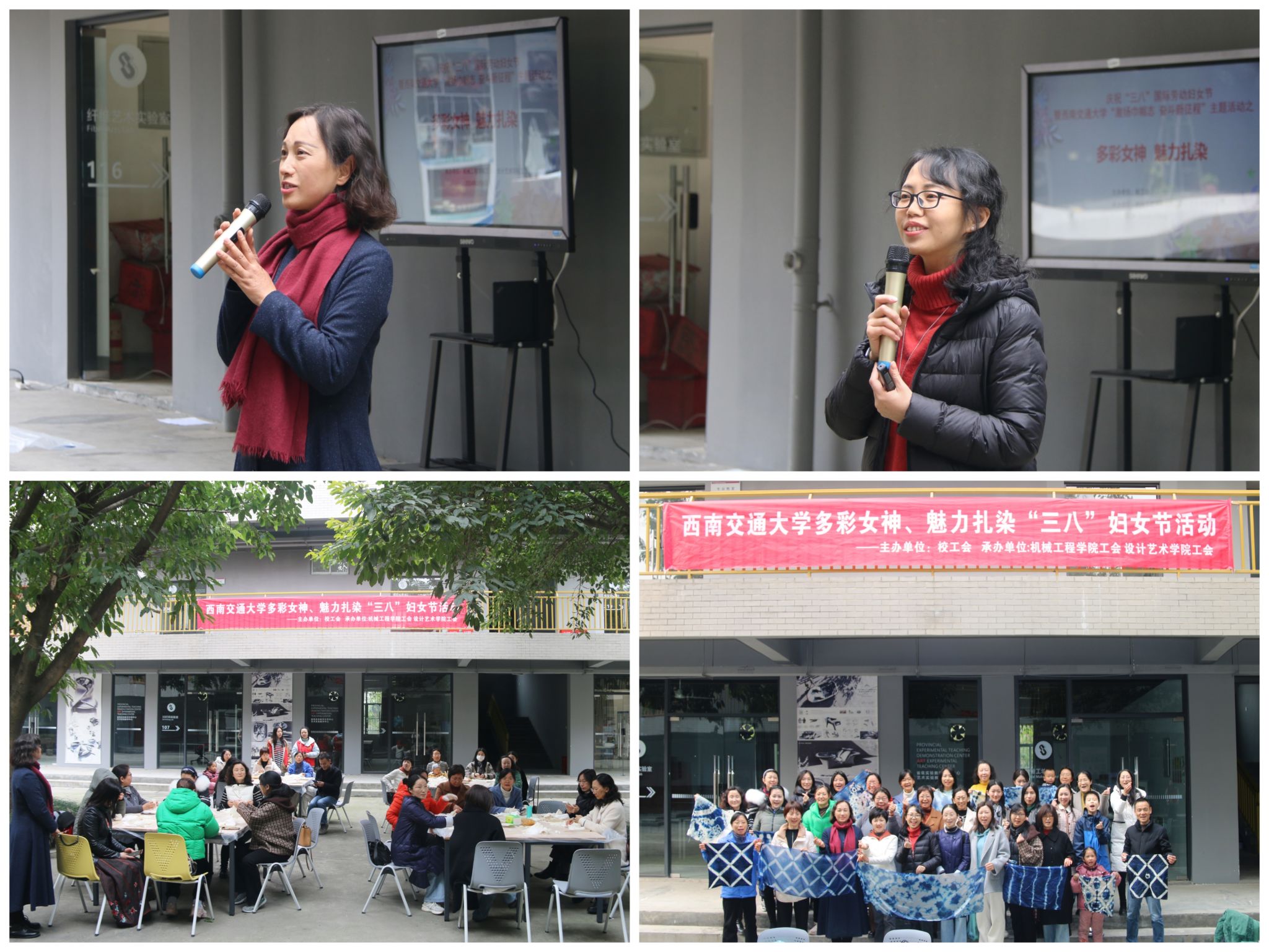 3月8日下午,best365英国在线体育多彩女神、魅力扎染“三八”妇女节活动在犀浦校区设计艺术学院馆外实验室举行。校工会副主席杜红代表校工会致辞,设计艺术学院教师赵菁给在场女教职工介绍扎染的相关知识。