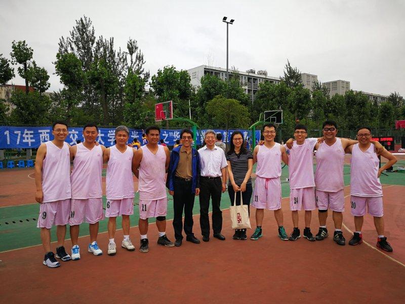 经管学院同样不甘示弱。几次内传内的配合后,34号武俊老师在篮下找到机会,反手打板进球。接下来,双方进行了多次攻防转换,队员们都全力拼搏,场下的老师们也为场上队员加油助威。