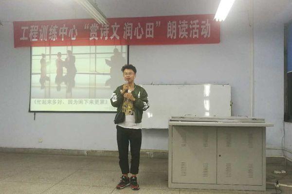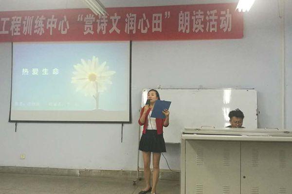 为了传承和弘扬中华民族优秀文化,让每一位教职工感受中华语言与文化的魅力,在中心掀起朗诵学习经典美文的热潮,营造浓郁的中心文化氛围,2017年5月24日,工程训练中心在多媒体教室举行了“赏诗文 润心田”为主题的教职工朗诵活动。
