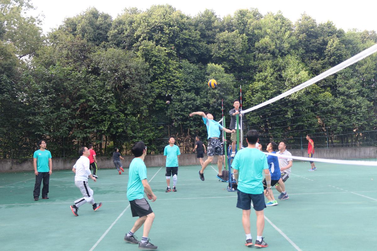骤雨初歇,天公作美,碧空如洗,周一的排球比赛照常进行。5月15日17:30,best365英国在线体育教职工排球赛男子及女子组四分之一决赛拉开帷幕。