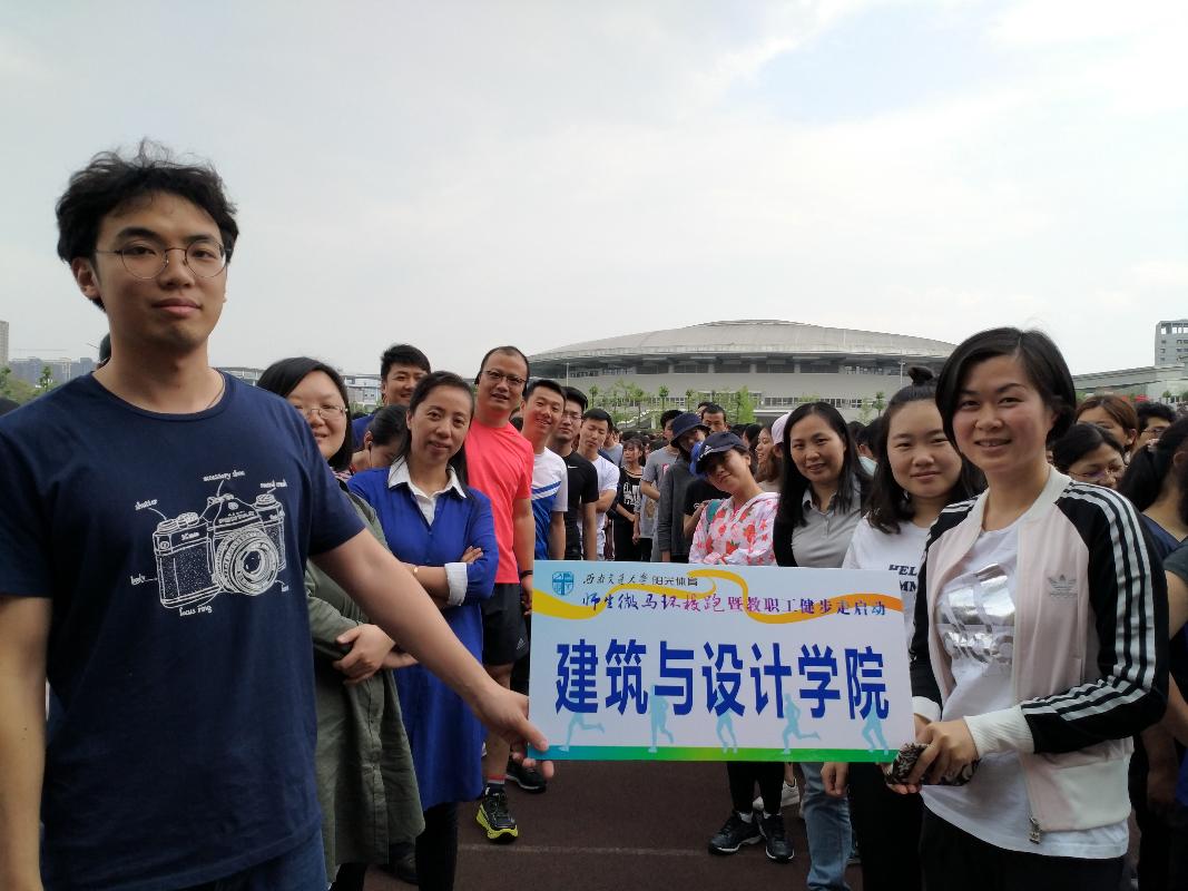 5月4日下午4:00微马环校跑在best365英国在线体育犀浦校区北区体育场正式拉开帷幕,我院组织了55位师生参加本次活动。在活动开始前,由体育部老师带领师生们做跑步前的热身运动。随着一声枪响,师生们个个不甘视弱,像离弦的箭随枪响冲出起跑线,围着春意盎然的校园跑起来,师生们在享受运动之乐的同时,牢固树立“健康第一,终生体育”的新理念。