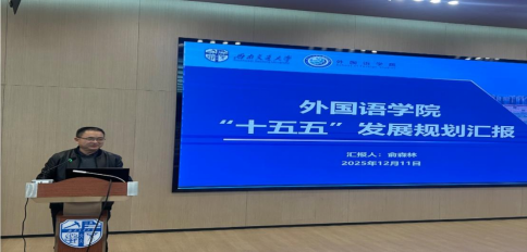 随后,俞森林院长作了《外国语学院“十五五”发展规划》报告。报告系统梳理了学院在“十四五”期间的建设成效与短板不足,分析了“十五五”时期面临的发展机遇和挑战,并明确了未来发展的核心任务与实施路径。俞森林号召全院教职工凝心聚力,把握趋势,聚焦关键领域寻求突破,共同实现学院发展的新跨越。