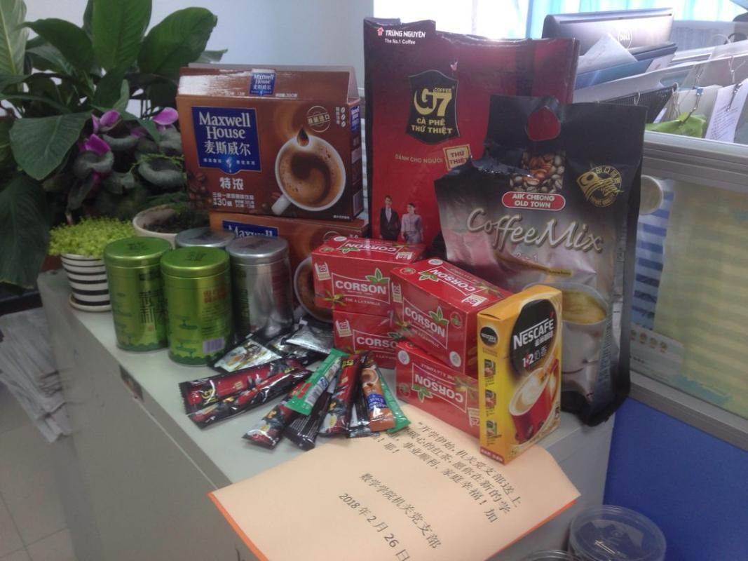 这是数学机关实施的“宣传基层组织,服务一线教师”的系列行动之一,上学期数学学院工会工作得到了学院领导和会员们的一致肯定,机关工会小组在其中做了大量工作,为了更好地发挥基层工会的职能,服务好一线教师,机关党支部和机关工会小组,决定开展“宣传基层组织,服务一线教师”系列活动。他们设计好了一个又一个服务项目,准备在新的学期里逐步实施,机关工会主动从支部书记津贴中拿出部分资金,购买了红茶和咖啡,为教师们送去了新学期的第一缕温暖,让一线教师会员确实感觉到基层组织的关爱,带动教师们发挥主观能动性,更好的服务一线教学、更好的服务校、院发展。