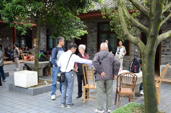 西来镇是一个距今有1700年历史的川西古镇,拥有十二棵声名远扬的千年古榕和保存完好的明清时期川西风格建筑。在古镇中,大家徜徉在小桥流水间,行走于古道老街上,呼吸着新鲜的空气,感受着自然与人文交融的美。大家笑着、走着,一路上,或三五结伴,用相机记录满目美景;或独自走进博物馆,与文物来一场穿越千年的对话;或来到成都战役的烈士陵园,庄重缅怀长眠在苍松翠柏间的战斗先烈们。古桥上,潺流的溪水与凉爽的春风令大家驻足,坐在桥边木椅上,远眺临溪河岸小桥流水人家,缓缓品一壶香茗,闲适地话一话家常,学院教职工们从繁忙的工作中挣脱出来,于自然风光中放松身心。