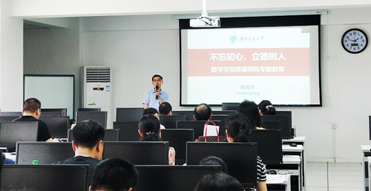 6月28日下午,数学学院工会在X2411室,组织召开了全院教职工大会,专题开展了师德师风教育讲座。全院100多名教师参加。