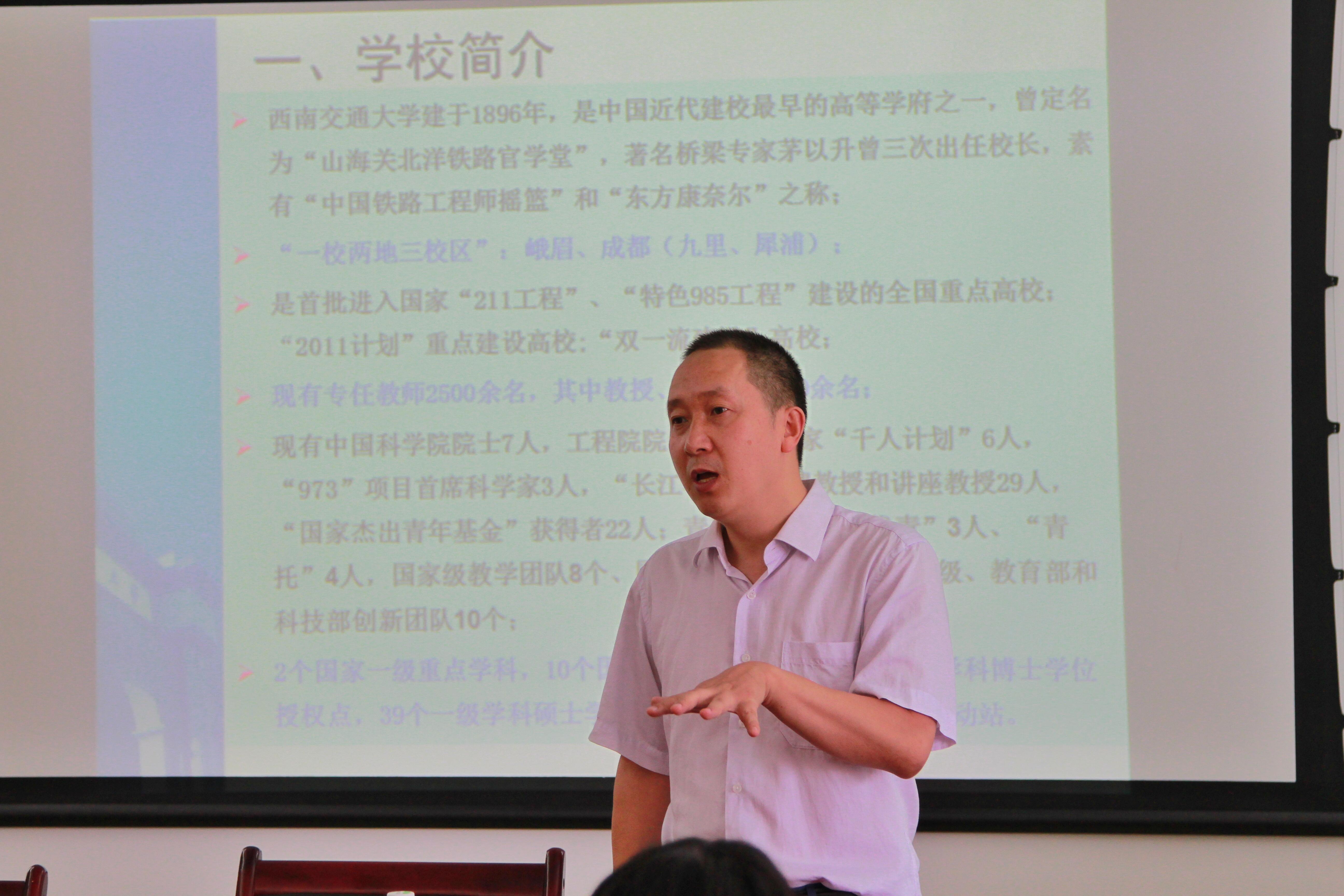开营仪式上,数学学院副院长杨晗教授,介绍了数学院的教育概况,他期望同学们积极利用参加夏令营的机会,开阔眼界,增长见识,充分了解西南交大丰富的科研资源,深刻感受数学院深厚的文化底蕴, 深入领悟数学在科技生活中的重要作用和无穷魅力。